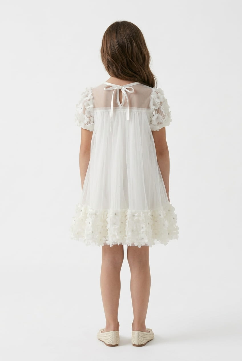 Haljina Romy - Kremasta bjelina s 3D cvjetovima za djevojčice