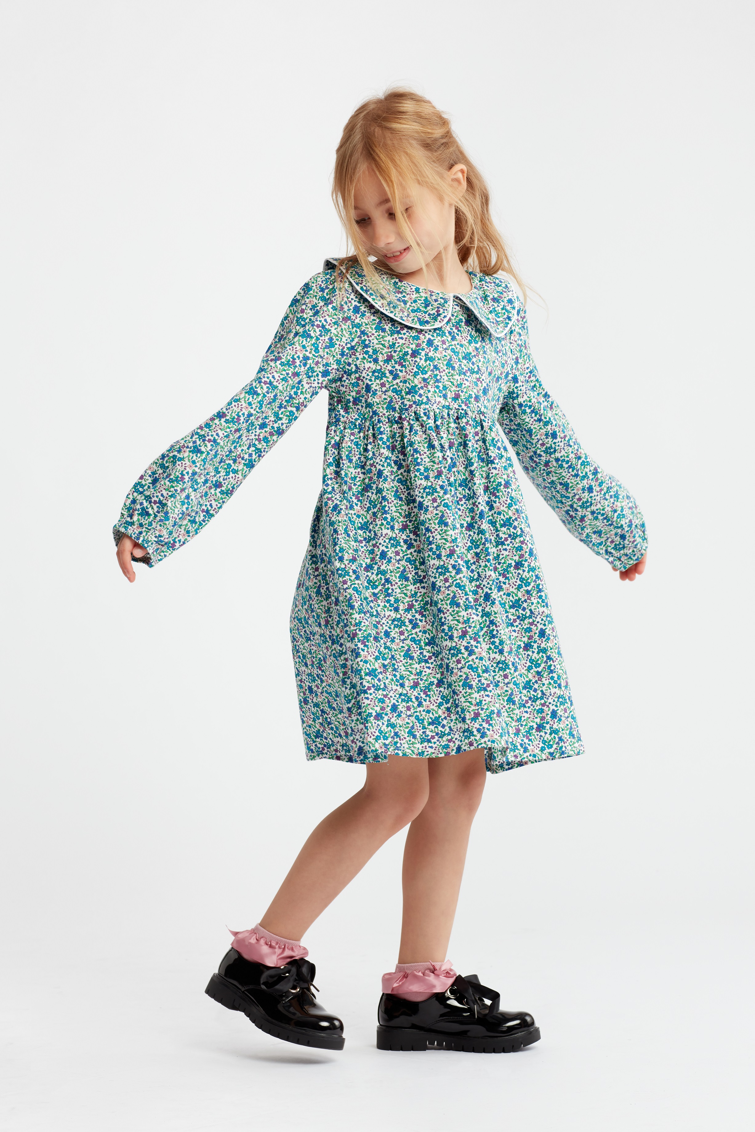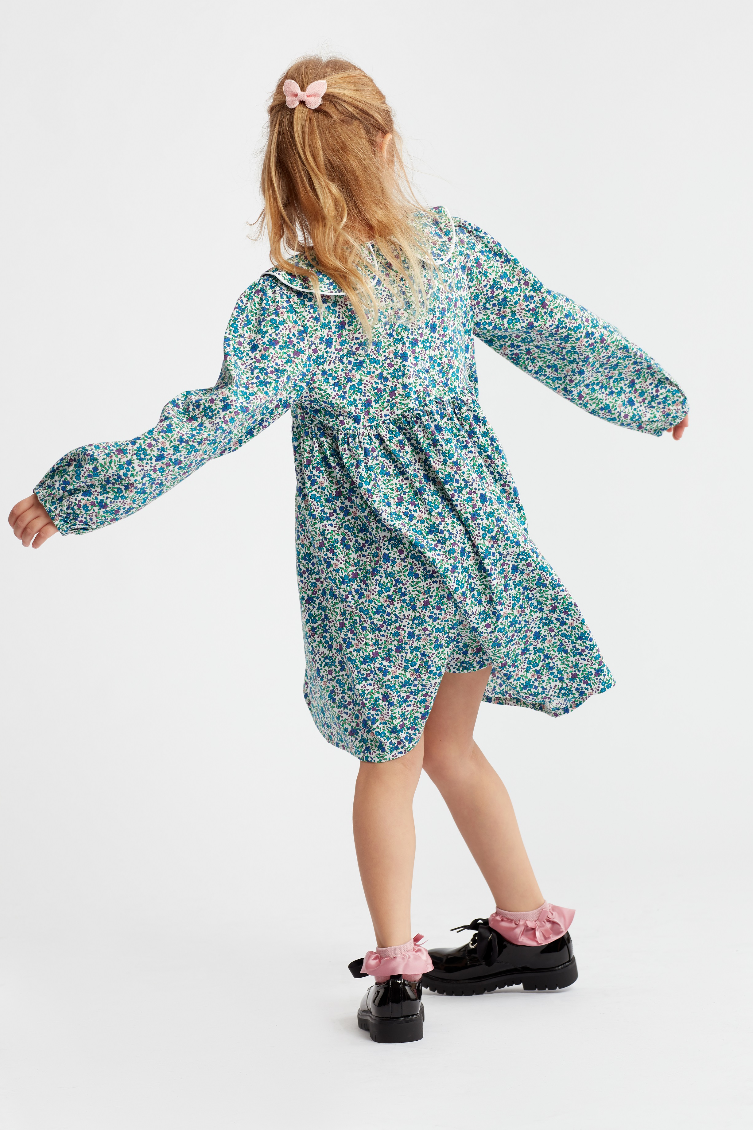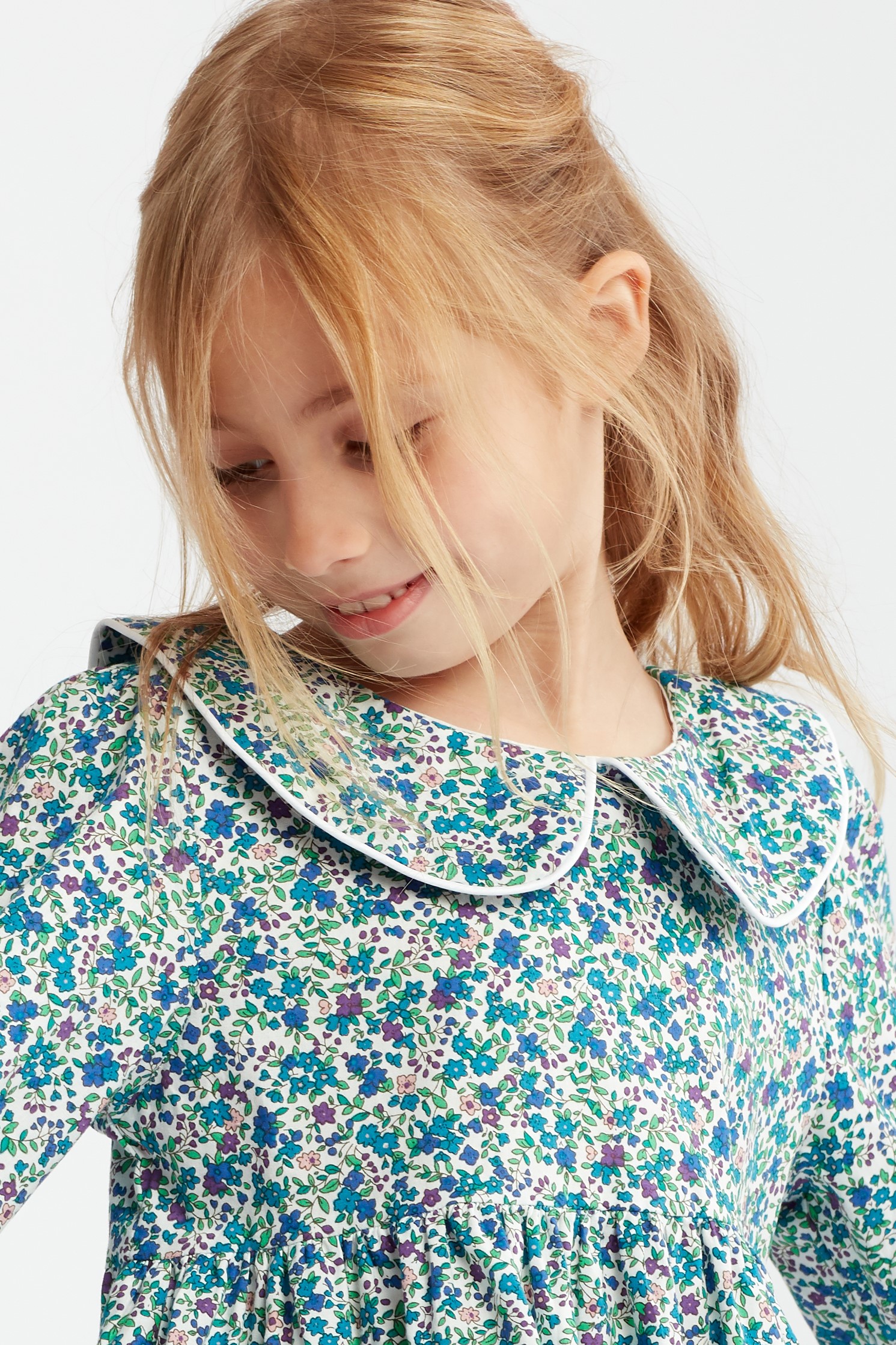 Pamučna plava haljina za djevojčice Amelia sa sitnim cvjetićima.