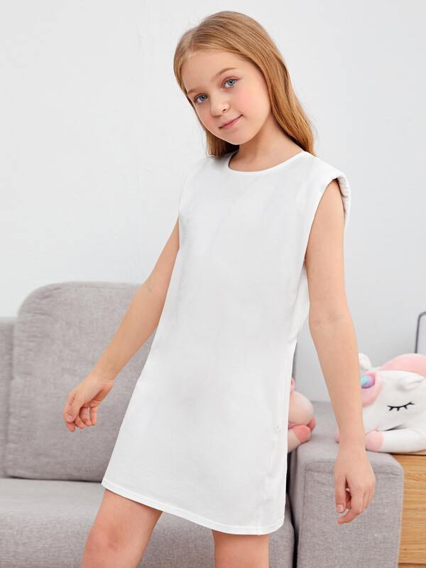Haljina za djevojčice od mekanog, ugodnog pamuka u obliku cijevi. Jastučići ušiveni u rukave dodaju šarm haljini.