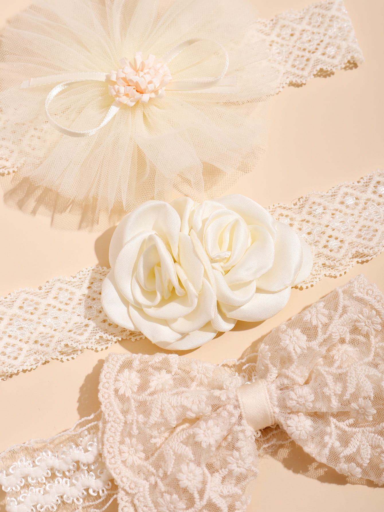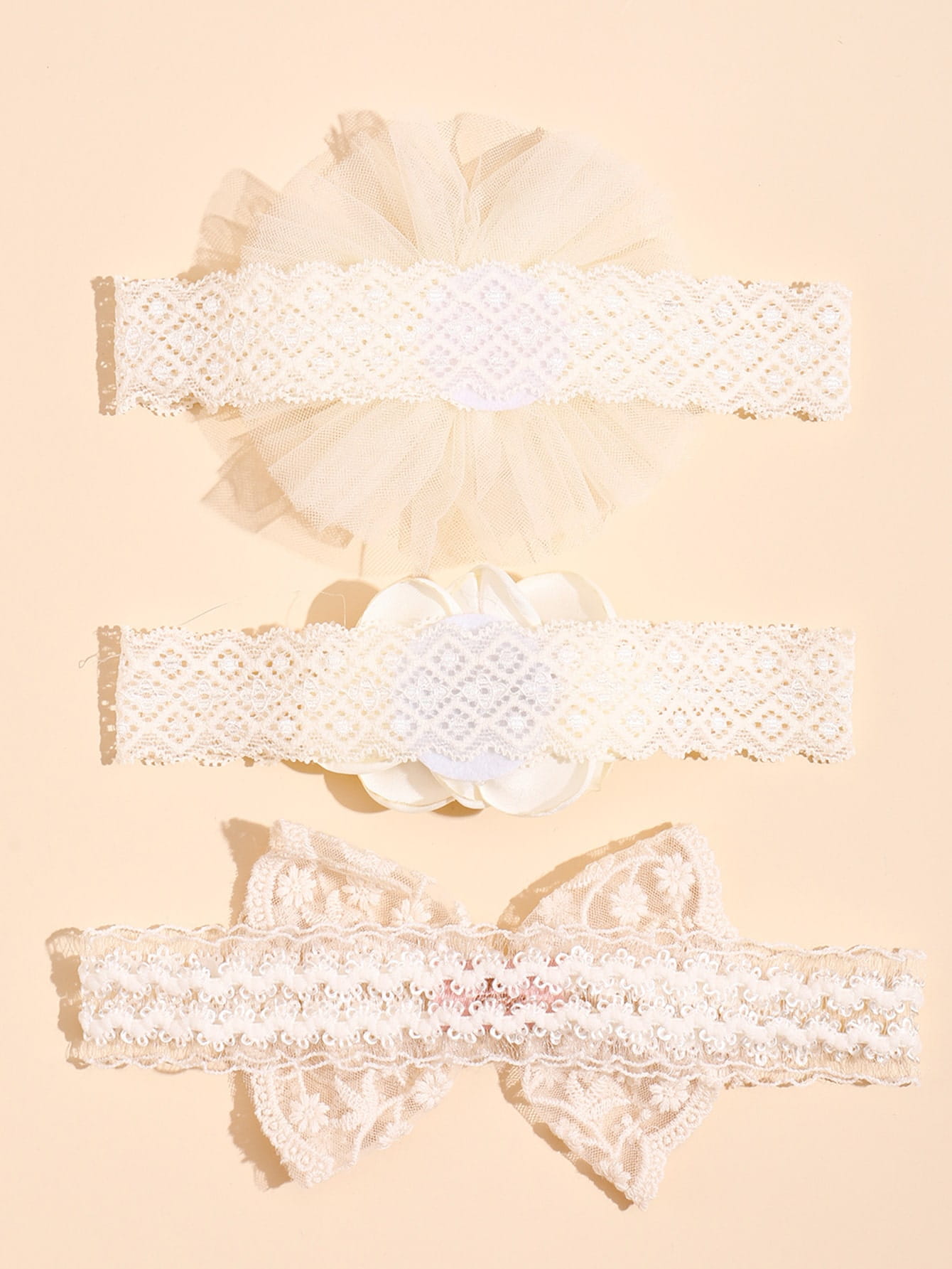U našem setu nalaze se tri trake za glavu, svaka postavljena na nježnoj, elastičnoj čipki u krem boji. Ove trake za glavu za djevojčice nisu samo praktične, već i dodaju šarm svakoj odjevnoj kombinaciji, od svakodnevnih igara do posebnih prigoda.