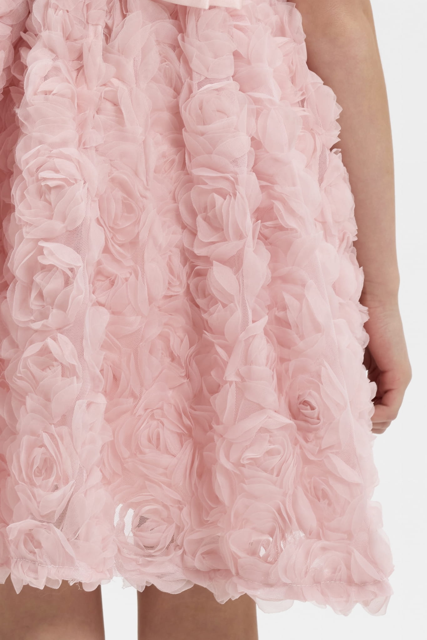 Svaki detalj na haljini Naya pažljivo je osmišljen kako bi stvorio sklad između udobnosti i visokog stila. Ono što ovu kreaciju čini istinski jedinstvenom su reljefni 3D cvjetovi utisnuti u materijal, koji haljini daju teksturu i život. To nije obična tkanina; to je umjetničko djelo koje pod prstima ostavlja dojam luksuza. Kroj bez rukava i dužina do koljena osiguravaju slobodu pokreta, jer znamo da i najotmjenije princeze vole zaplesati na podiju.