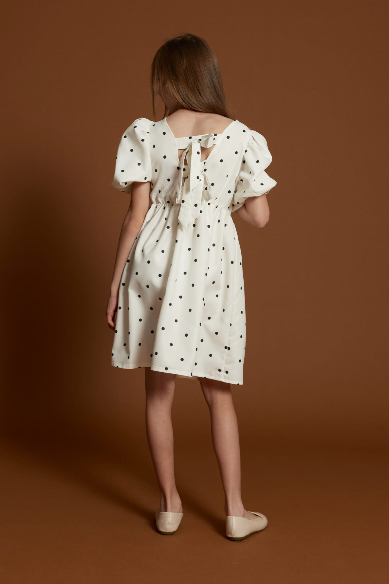- Dizajn: Bijela boja s crnim točkicama, puf rukavi i dvije odvojive mašne na leđima za dašak luksuza.