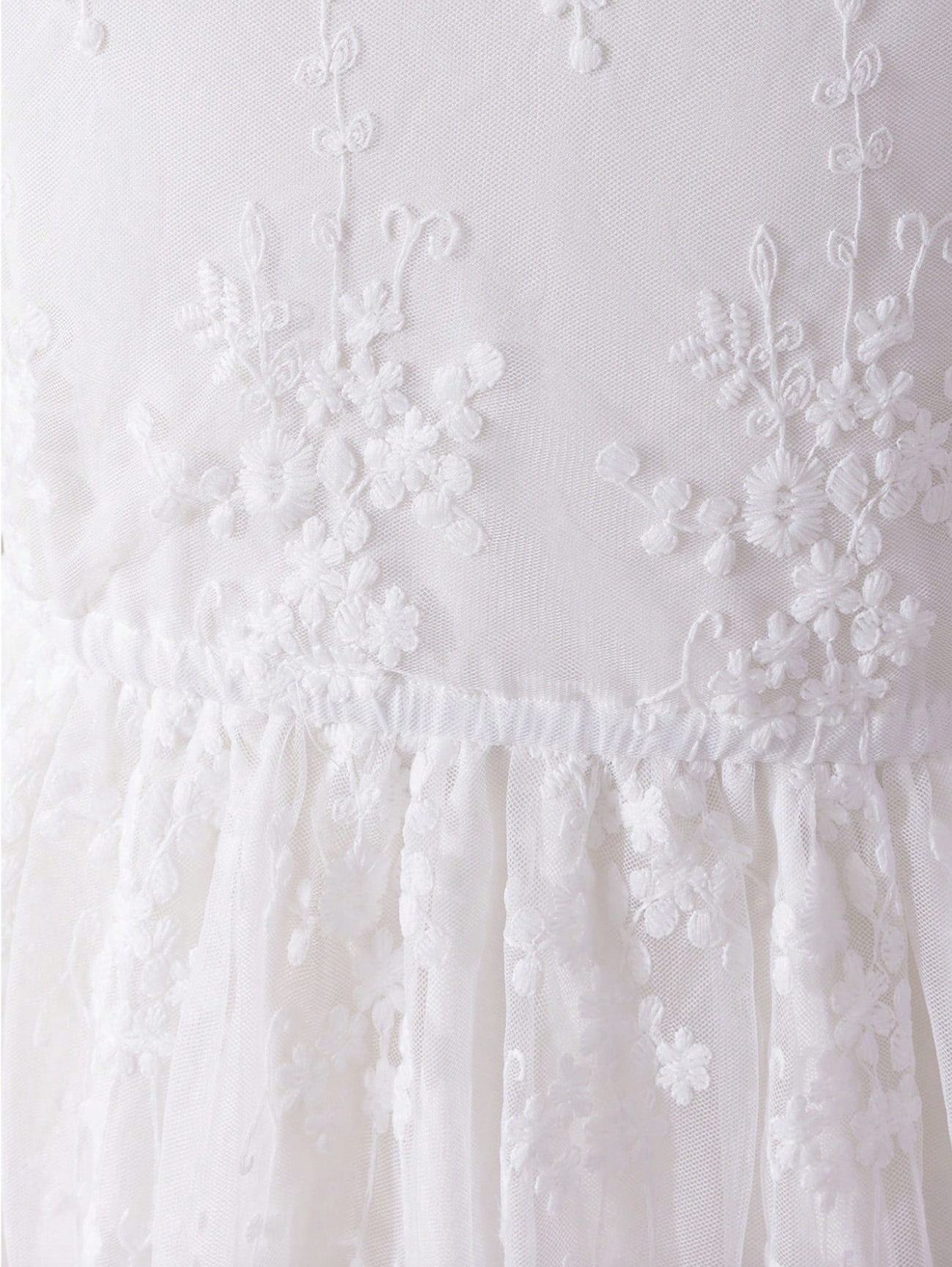 Ono što haljinu Tess čini istinskim remek-djelom dječje mode je njezin materijal obogaćen delikatnim vezom. Poput čipke na starinskim stolnjacima naših baka, ovaj vez priča priču o tradiciji i vještini. Bijela boja, simbol čistoće i novih početaka, čini je idealnim izborom za sakramente poput Prve pričesti ili Krštenja, gdje se traži dostojanstvo i svečanost.