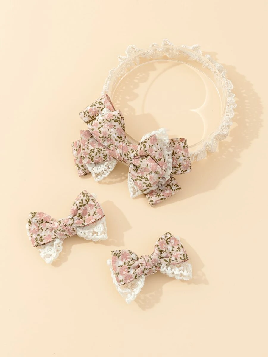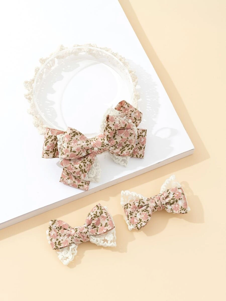 Elegantna, bez pritiska traka za glavu za djevojčice i 2 ukosnice s mašnicama i čipkom.