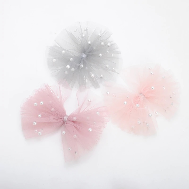 Prekrasna kopča za kosu od tila u obliku mašne, ukrašena biserima.