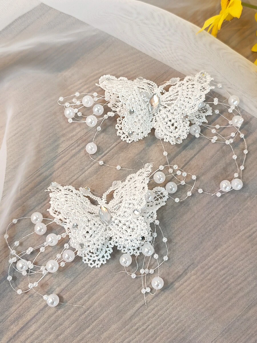 Ukosnice s čipkom i perlama 2 komada